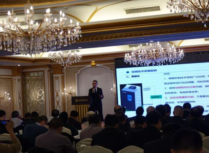 大陸希望集團機電版塊何建波總經(jīng)理致歡迎詞,希望森蘭被選為常務(wù)理事單位。